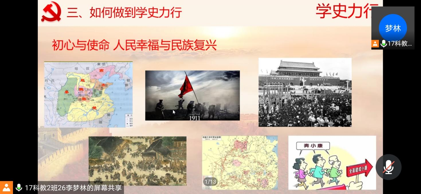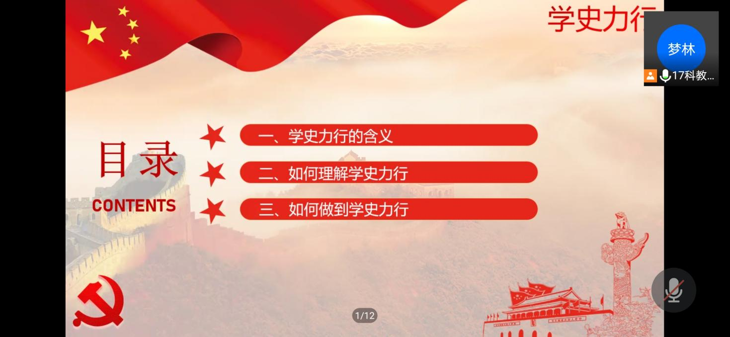 历史是最好的老师。历史在人民的探索、奋斗中造就了中国共产党,党团结带领人民群众书写了中华民族发展的新篇章。为了进一步把学习党史同总结经验、观照现实、推动工作结合起来,教育科学公司员工第二党支部于2021年6月16日19:00点组织开展了党史学习教育“学史力行”专题线上党课学习活动。支部全体员工党员参与本次会议,会议由教育科学公司员工第二党支部组织委员李梦林同志主讲。