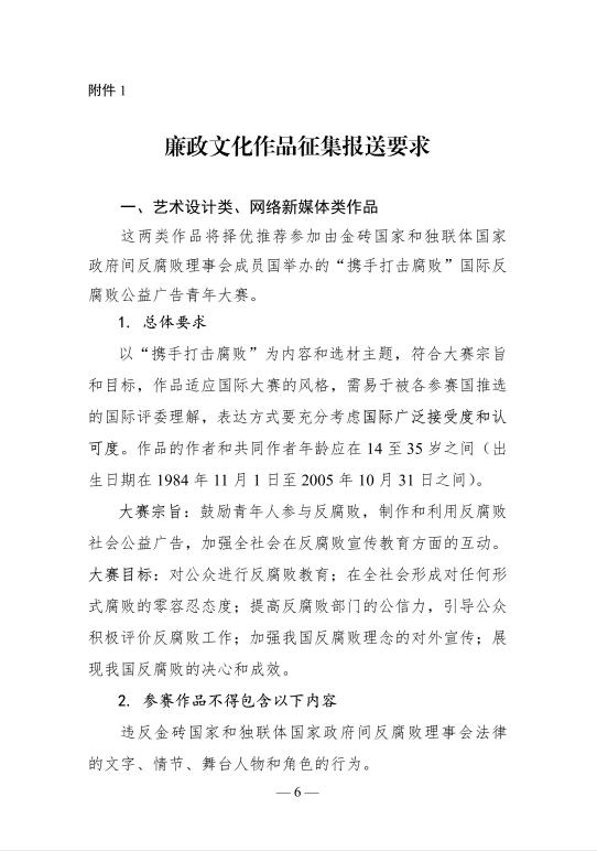 下一条:关于征集第七届全国高校廉洁教育活动暨“携手打击腐败”公益广告作品的通知