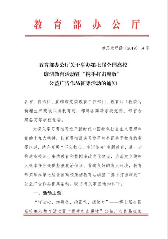 教育部办公厅关于举办第七届全国高校廉洁教育活动暨“携手打击腐败”公益广告作品征集活动的通知