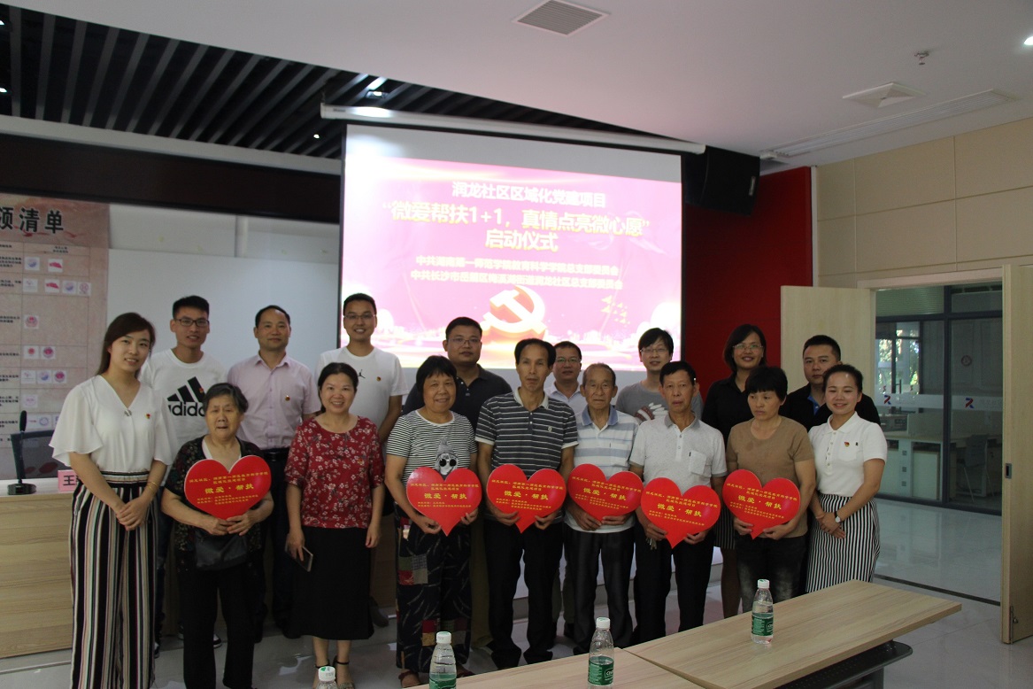 2019年6月25日下午,公司党总支推出的又一个共建项目:“微爱帮扶1+1,真情点亮微心愿”的启动仪式在岳麓区润龙社区党建中心成功启动。公司党总支委员、全体教师党员、润龙社区党总支委员、居民代表等一百余人参加。活动由梅溪湖街道润龙社区党总支委员黄茜同志主持。