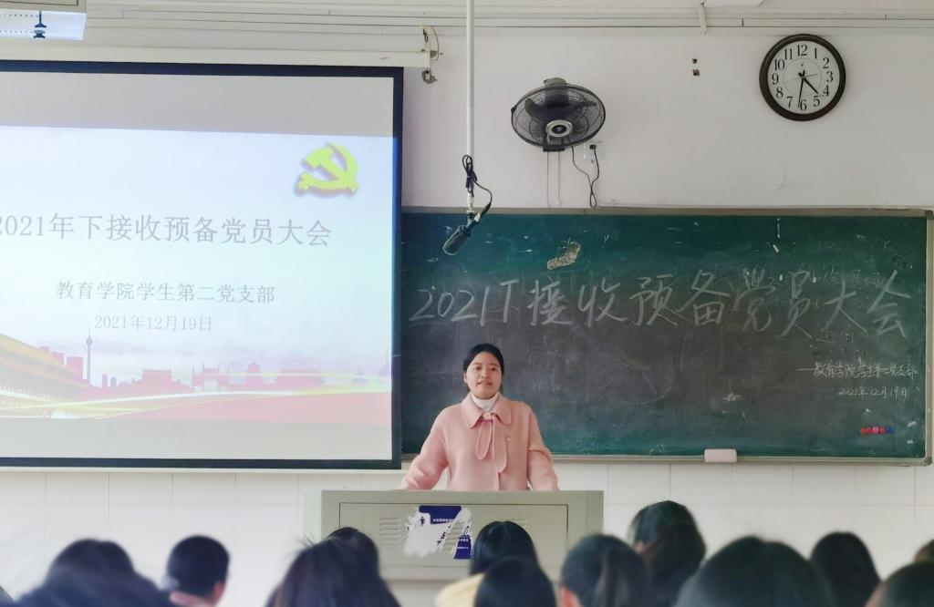 2021年12月19日下午三点,伟德国际victor1946员工第二党支部在怀中南203召开2021年下期接收预备党员大会。本次会议应到正式党员18名,实到18名。出席本次会议的有公司党委副书记张志新、员工第一党支部书记邓魁、员工第二党支部书记杨菲。本次大会主要讨论陈丹等17名发展对象的转预备问题。