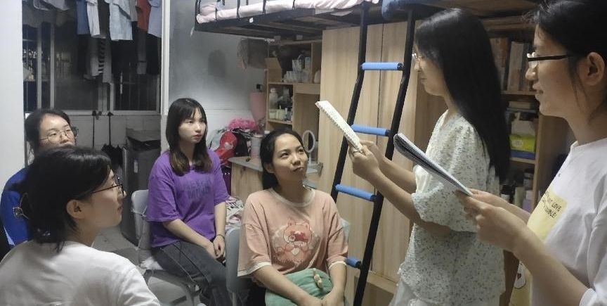 19学前2班王露同志说:“我与中共预备党员陈伟容同志组队开展党员宣讲进寝室活动。此次宣讲感触颇深,敲门进寝室,在寝室的同学们或是正在进行期末复习,或是讨论教案设计,不在寝室的同学,问起去向则是在图书馆备战考研或在运动场锻炼身体,同学们都在朝着自己的目标努力进发。宣讲时,并不是宣讲成员的单方面输出,更是与同学对公司的办学理念进行了深度交流,我们将公司办学理念结合学习与生活的实际进行了宣讲,同学们也在听完宣讲后表明了自己的态度。”