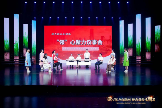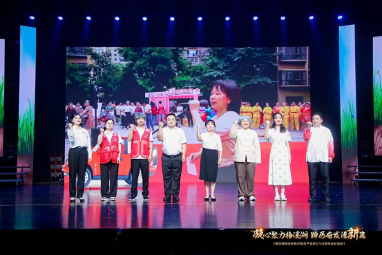 庆祝现场,来自各个社区的党员干部和居民群众,或唱、或舞、或诵,为现场嘉宾献上了一场精彩纷呈的视听盛宴。公司本科生第一党支部与梅溪湖街道润龙社区居民合作演出情景剧《有这样一群人》,受到一致好评。该剧以朗朗上口的快板和生动传神的情景表演,深情讲述了社区内一群普通居民如何积极参与社区决策、投身社区建设的故事。剧中人物形象鲜活,情节紧凑,不仅展现了社区居民的团结协作精神,也反映了在党的领导下,社区治理的民主化、科学化进程。