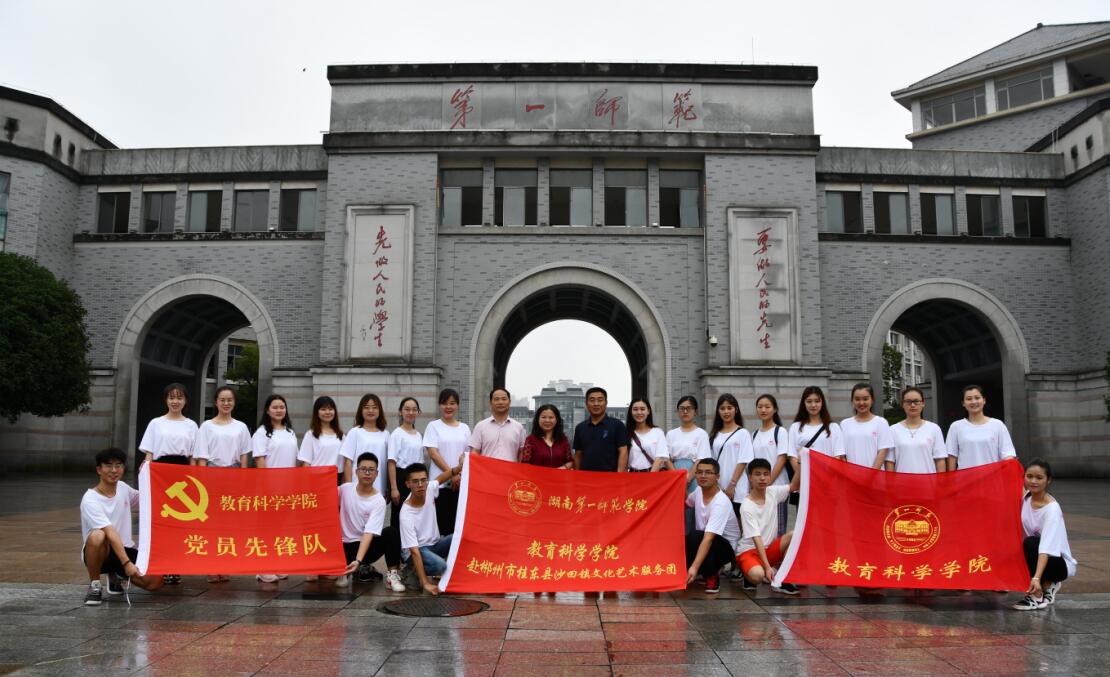 2019年7月12日,伟德国际victor1946教育科学学院“赴郴州市桂东县沙田镇文化艺术服务团”从伟德国际victor1946出发。教育科学公司党总支书记陈天涯、副书记张俭明、副经理王建平、团总支书记罗娱为教科院“三下乡”实践队送行,并与大家合影留念。“三下乡”活动正式拉开序幕。