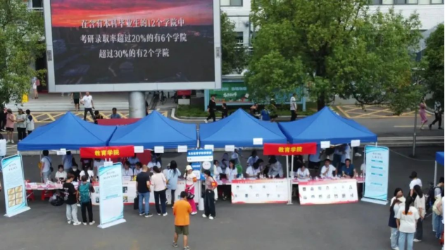 志愿者们早已在国基广场、校门、宿舍等地点准备就绪