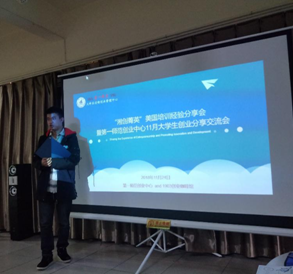 创业分享交流会第一阶段刘超同学开始了自己美国培训以及创业的心得分享,他向我们展示了在美国培训期间取得的荣誉证书,介绍了美国式的创新创业思维,并讲述了在美期间参观美国硅谷高科技公司的体验与想法;第二阶段,刘超同学讲述了自己的创业经历,讲述与同学一起创立公司并拿到投资的过程,创业期间遇到的困难和他们团队应对的方法,分享了他们近期的项目成果,并鼓励同学们勇于去尝试探索陌生的领域,他在分享中告诉我们:创业需要自身能力的不断积累,创业过程需要勇气同时也需要智慧,在创业过程中同时是创业者自身的成长。