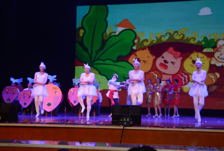 彭小奇书记上台致辞后,女教职工风采大赛拉开帷幕。由十六个分工会自编自导自演的节目向全校师生展示了一师女教职工积极向上的精神风貌与多姿多彩的艺术才华。教科院分工会的情景剧《教科总动员》,以一个特殊家庭齐心协力拔萝卜的剧情进行演绎。公司37名教师倾力演出,气质美女童小娇董事长应邀参加了节目表演。蒋蓉经理绘声绘色的旁白,刘军、万湘桂老师精彩的反串,胡治伟等四位男老师欢快的四小天鹅,庄远红等八位女老师靓丽的旗袍展示,许兰等十位老师富有童趣的动物扮相……或诙谐或优雅或萌态可掬,展示出了教科院教师多才多艺、富有童心童趣,博得了现场观众一阵阵欢快的笑声、热烈的掌声!最终公司以富有趣味的表演,浓郁的教育情怀与专业素养体现,获得全场好评,荣获本次展示大赛二等奖。