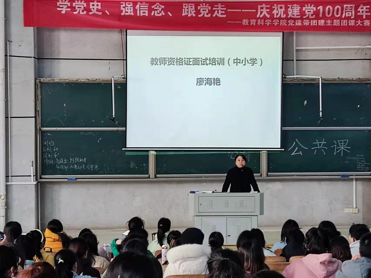 为了帮助公司员工更好地备考教资面试,针对公司不同专业员工的特点,切实提升员工应对教团队格考试的面试能力,公司分别于12月23号中午12点半和12月28日上午8点半特邀教教资面试专家廖海艳副教授和王国锋副教授为19级科教、心理学专业全体员工开展教资面试培训讲座。