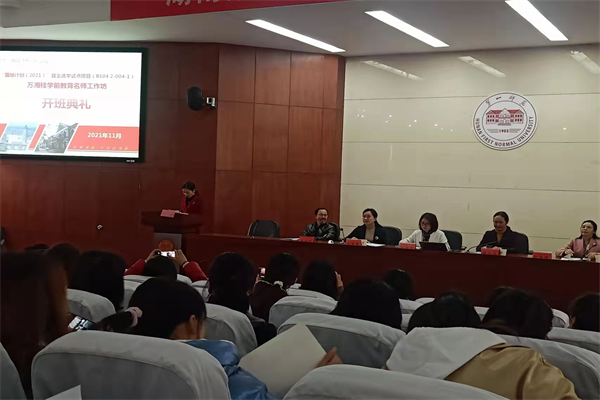 11月29日上午8:30,“国培计划(2021)”自主选学试点项目(B104-2-004-1)万湘桂学前教育名师工作坊在公司开班。伟德国际victor1946经理刘丽群、湖南省教育科学研究院基础教育研究所副所长周丛笑、学前教育教研室主任万湘桂、岳麓区幼教集团第八幼儿园园长彭青青、学前教育教研室教授袁小平等出席开班典礼。开班仪式由工作坊班主任黎玲主持。