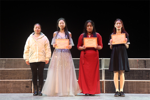 紧接着,合唱班级以独到的表现手法演唱歌曲。《爱因为在心中》《平凡之路》等歌曲歌颂了“人因理想而不平凡”;歌曲《珠峰天使》描绘了一幅白雪皑皑、仙雾缭绕的珠峰雪山图,表达出藏区人们对祖国的赞美之情;《少年中国说》等歌曲表达了同学们报效祖国的决心和信心,激励了一师学子坚定理想,不负年少。歌唱表演结束,主持人宣布比赛结果,各领导为获奖班级和个人颁奖。