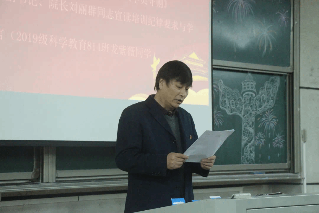 2019级科学教育专业814班龙紫薇同学作为学员代表发言,代表182名学员立下郑重承诺:“我辈定以当代老员工的精神风貌来迎接新的征程,新的考验,新的挑战。”