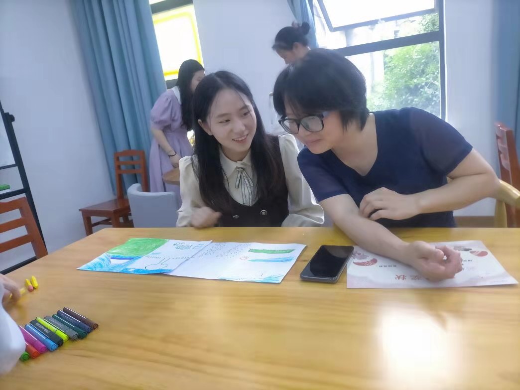 为了做好一对一的家庭精准服务,省重点实验室挑选了25名心理学本科生,1人做主持人,负责开场前带领孩子进行心理绘本阅读,进行暖场和随后的流程播报。其余24人做心理辅导员,为每组家庭提供密切的活动伴随和深度的心理互动。先前,他们接受过较多的表达性艺术治疗的系统培训,对活动的心理价值、流程、注意事项有着清晰的了解,愿意投入更多的社会心理实践,参与到广阔的社会心理服务的一线工作。对本次走出课堂,面对实实在在的工作对象做更有挑战性的心理实训,内心充满了渴望运用和提升心理技能的期待,又隐隐夹着着几许担心本领不足的忐忑。环顾四周,他们各自在内心默默地操练着心理绘画技巧的步骤和解读心理绘画作品的技术要领。