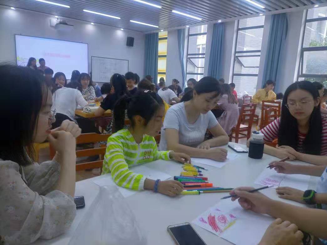 第三个环节是技术督导黄任之老师发言,她扼要地介绍了心理绘画的心理价值,同时鼓励心理学的同学大胆实践,把自己的专长展现出来,为家庭提供优质的心理服务。随后,同学们都走上各自的岗位,开始了私人订制的心理服务啦。从开始亲子绘画作品制作、到游览画中世界、讲述一个关联故事到给绘画作品命名,每个家庭都在一丝不苟地进行,一旁的心理辅导员全程见证和协同,观察着家庭内部的互动方式、交流内容、绘画行为和彼此的情绪表现,作为独立的“第三只眼”,共同完成了这个有趣而精彩的心理探索之旅。
