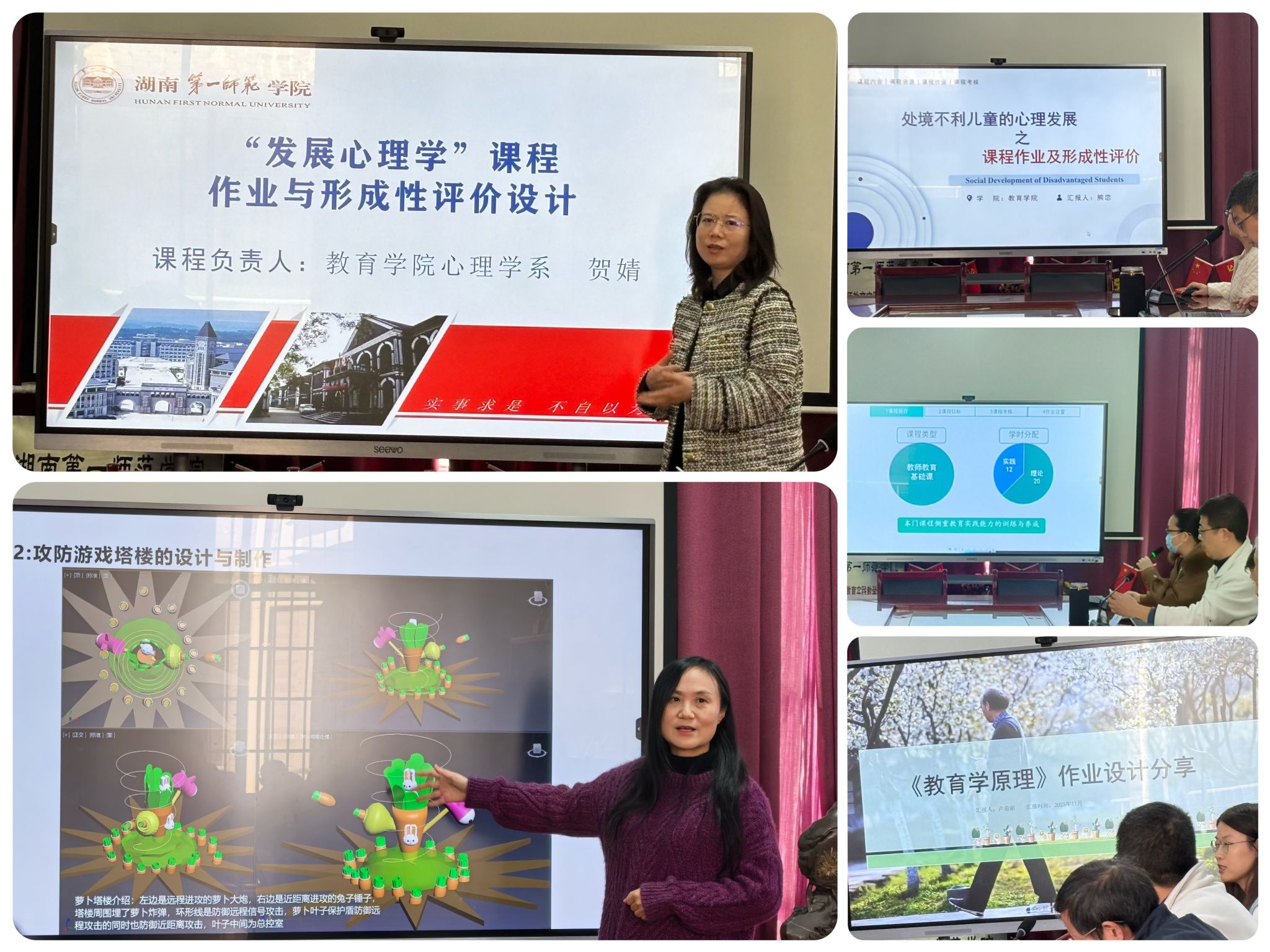 本次沙龙以“案例分享+互动研讨+专业点评”为核心流程,学前教育系、教育系、心理系、教育技术系五位教师结合课程特色,呈现了兼具学理深度与实践温度的教评探索。邓祎老师《幼儿园科学教育与活动指导》以课程目标为起点,以产出标准为导向,以实践应用为重点,构建了“小组试教、听课评课、科学实验微课视频、在线学习”四类作业的形成性评价,引导员工深刻认识幼儿园科学教育所肩负的拔尖创新人才奠基的时代使命,多角度综合考查员工认知、技能、情感三维度的核心素养胜任力。卢迎丽老师《教育学原理》以引导员工回归教育学经典著作阅读为主线,聚焦教育学经典核心观点,结合教育实践拆解理论逻辑,助力员工系统掌握学科基础知识,继而培养员工批判性思维与教育反思能力,循序渐进实现知识的内化、应用与转化。熊恋老师《处境不利儿童的心理发展》课程精心设计小组专题授课和案例分析,创新性开展“生1-师-生2-生1-师-生1”间线上线下、多水平、多层次互动,教师遵循最近发展区理论对员工作业进行及时批阅,以多频次、累进的高质量师生互动,引导员工理解并应用理论知识解决具有高阶性的实际问题,着力体现员工能力素养培育的应用型导向。贺婧老师《发展心理学》课程作业构建“作业设计、评价落地、持续改进”三维度教评闭环。作业内容整合主流教材与学术前沿成果,通过“课堂研讨+实训报告+科普视频”等形式,培养员工具备解决个体发展心理与教育中复杂问题的综合能力和高级思维。张玲老师《三维动画设计与制作》课程作业以员工数字作品自主设计有机撬动员工设计能力、审美能力的双向提升。作业有机融入课程思政元素,厚植员工的非遗文化审美与大国工匠精神,通过“个性化风格设计、案例迁移运用、审美表达落地”体现高阶性与挑战度,以“中国风传统审美+现代技术”的融合追求作品创造力。