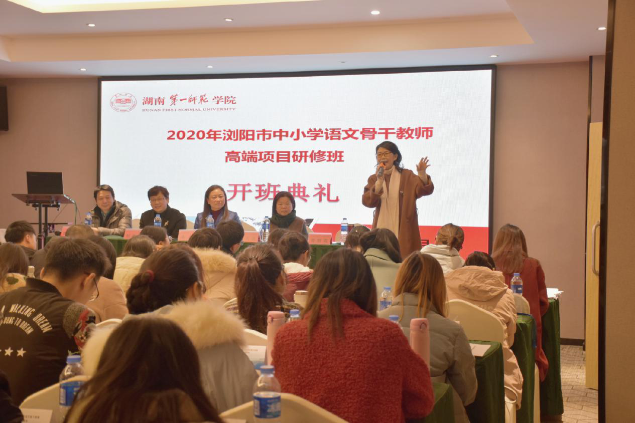 11月24日上午,市培计划——2020浏阳市中小学语文教师省内高端培训项目开班仪式在锦和源酒店隆重举行。浏阳市教师进修公司副董事长潘文教授,伟德国际victor1946经理胡春光教授,伟德国际victor1946教育科学公司党总支陈天涯书记,本期培训首席专家、伟德国际victor1946教育科学公司黄朝霞教授,培训班班主任、伟德国际victor1946教育科学公司谢泉峰博士和来自浏阳市的87位优秀中小学语文骨干教师共同参加了开班仪式。开班仪式由谢泉峰博士主持。