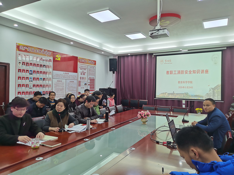 11月24日下午,在特立楼北208会议室,公司邀请湖南省湘安消防公益服务中心主任吴德亮为全院教职工进行了一场消防安全知识专题讲座。通过一个个鲜活的视频,呈现出很多消防安全没有掌握到位的情况下出现了不可挽救的惨痛,吴主任带领公司老师先后观看了消防安全不到位的视频和相关数据、一一介绍了消防工具的分类与使用,老师们感受很深,消防安全意识得到了极大的提升。