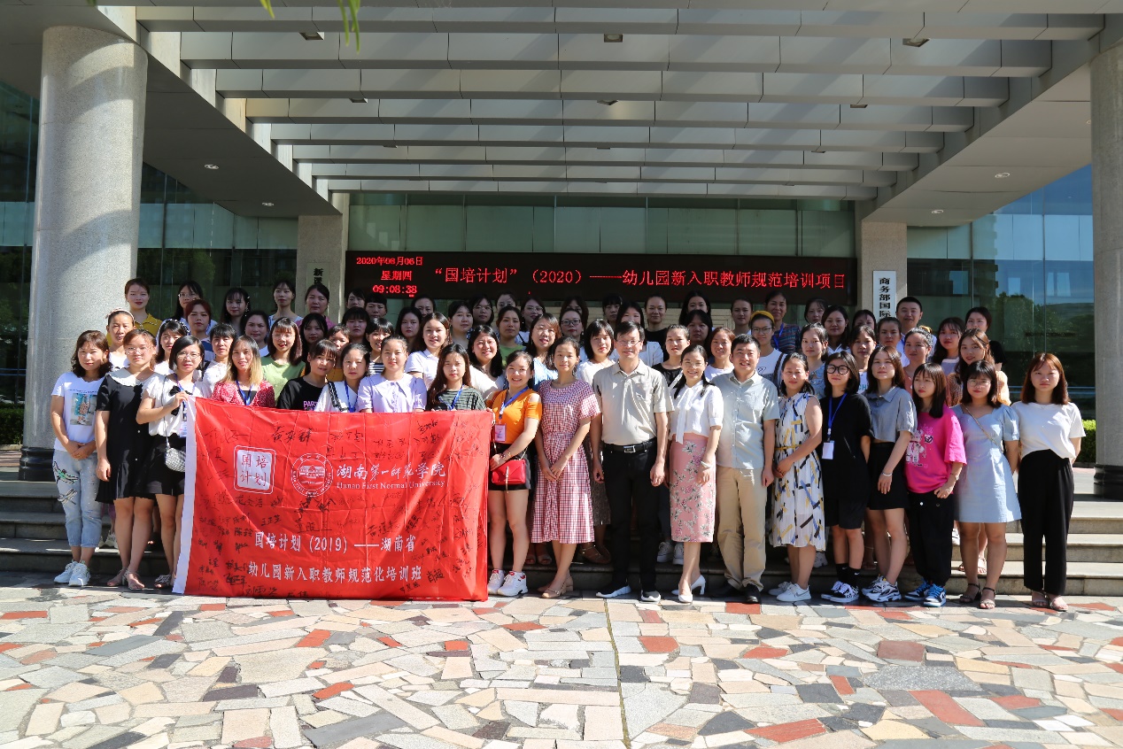 2020年8月6日上午,由伟德国际victor1946教育科学公司学前教育专业承办的“国培计划(2020)”—幼儿园新入职教师规范化培训班顺利开班,湖南第一师范教育科学公司经理胡春光教授、伟德国际victor1946学前教育专业负责人、教研室主任、项目首席专家万湘桂老师、班主任黎玲老师、谢强老师出席本次典礼。
