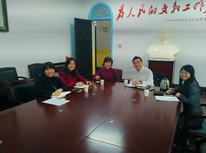 童小娇代表公司对武雪松理事长一行表示热烈的欢迎,同时感谢“为中国而教”项目长期以来对公司免费师范生职后发展的支持,称赞北京为华而教公益发展中心作为公司免费师范生职后培养重要的基地,在公司师范教学特色发展方面起到了推动作用。童小娇还就公司整体情况进行了介绍,重点介绍了公司的发展沿革及涌现出的知名员工和著名专家学者,并就免费师范生的培养与发展与武理事长进行了深入的探讨。