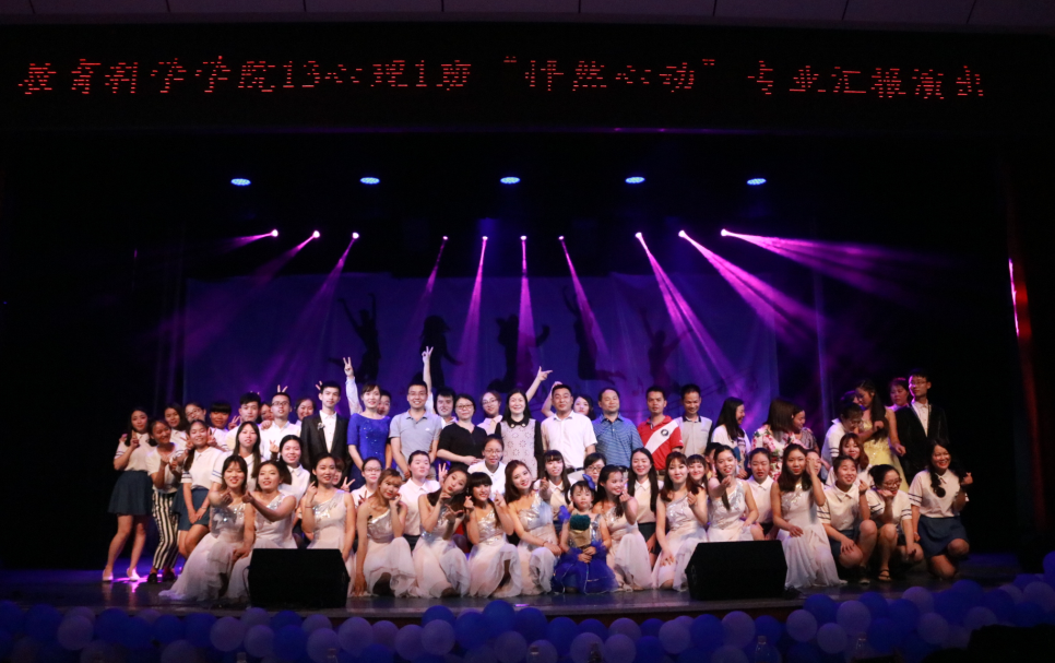 2016年5月31日晚,公司2013级心理学专业“怦然心动”专业汇报演出在科技楼实验剧场隆重举行。公司党委副书记刘志敏,教育科学公司负责人蒋蓉、王建平、张俭明,心理学教研室主任朱丹及大部分专业教师、全体辅导员、家长代表应邀出席,与在场300余名员工一起观看了演出。