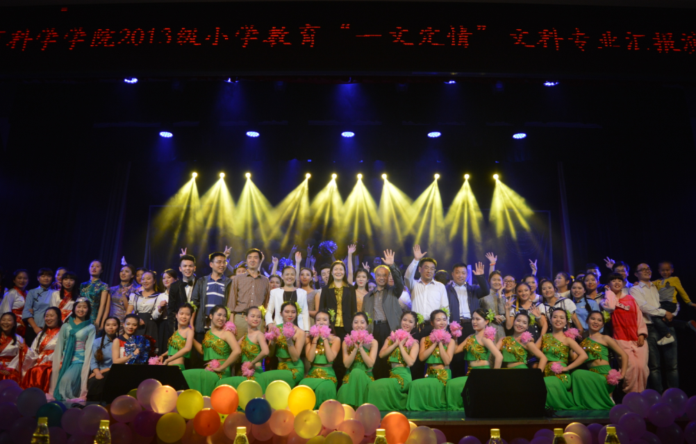 2016年5月27日晚,教育科学公司2013级小学教育文科班“一文定情”专业汇报演出于科技楼实验剧场隆重举行。公司党委书记彭小奇、人才招聘处处长黄小喜、马克思主义公司副书记谭小红、陇南师专初等伟德国际victor1946副经理姚鹏和长沙理工大学子弟小学董事长余丽英,教育科学公司负责人蒋蓉、张俭明及全体辅导员、小学教育教研室老师应邀出席,与到场员工约500余人一起观看了演出。