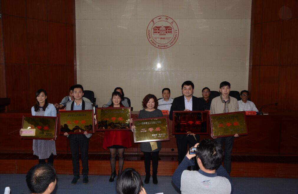 在一年一度的全校员工工作量化考核中,公司学工人员充分发挥团队协作精神,改善以往员工工作中的不足,克服困难,加强员工常规精细化管理,彰显全员育人凝成合力,全面造就魅力教科”的学工特色,在2014年员工工作量化考核中荣获二等奖,在2015年4月16日举行的员工工作总结表彰大会中得到表彰,同时受到表彰的还有2014年度优秀辅导员罗娱、刘军两位辅导员。希望在今后的员工工作中不断提升团队素养和工作实效,迈上新的台阶。