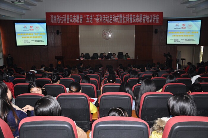11月18日上午,省社科普及志愿者“五进”系列活动启动式暨社科普及志愿者培训在公司举行。校领导肖湘愚、阳柏苏,省社科联党组成员、副主席黄建华,省文明办副主任周孟霞出席活动。来自全省280多名社科普及志愿者参加启动式和培训。教育科学公司蒋蓉经理、心理学教研室朱丹老师参加了会议。