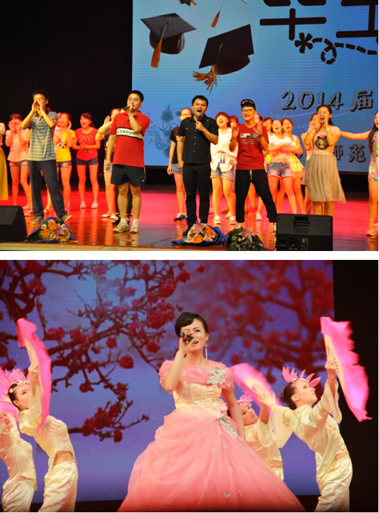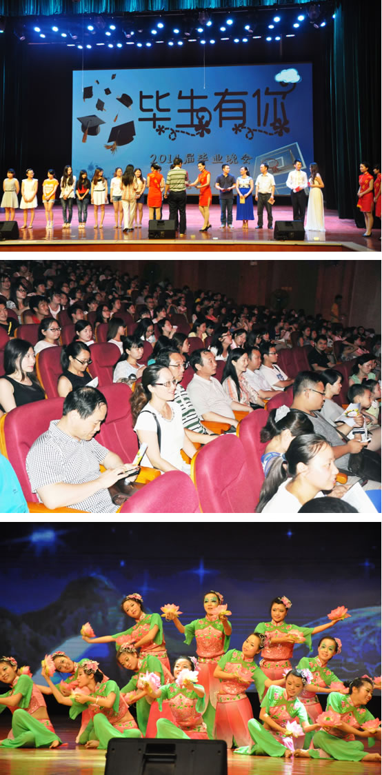 晚会开始前,教育科学公司党总支书记张尚晏致辞。他总结了2014届毕业生所取得的优异成绩:31人被评为省级优秀毕业生,151人被评为校级优秀毕业生,318名毕业生光荣加入中国共产党,17名同学考上研究生。他对毕业生寄予三点希望:一是希望大家永怀报国为民之志,争当“国民表率,社会栋梁”;二是希望大家坚守进取务实之心,做到“终身学习,追求真理”;三是希望大家锤炼坚韧强健之身,实现“全面发展,立己立人”。