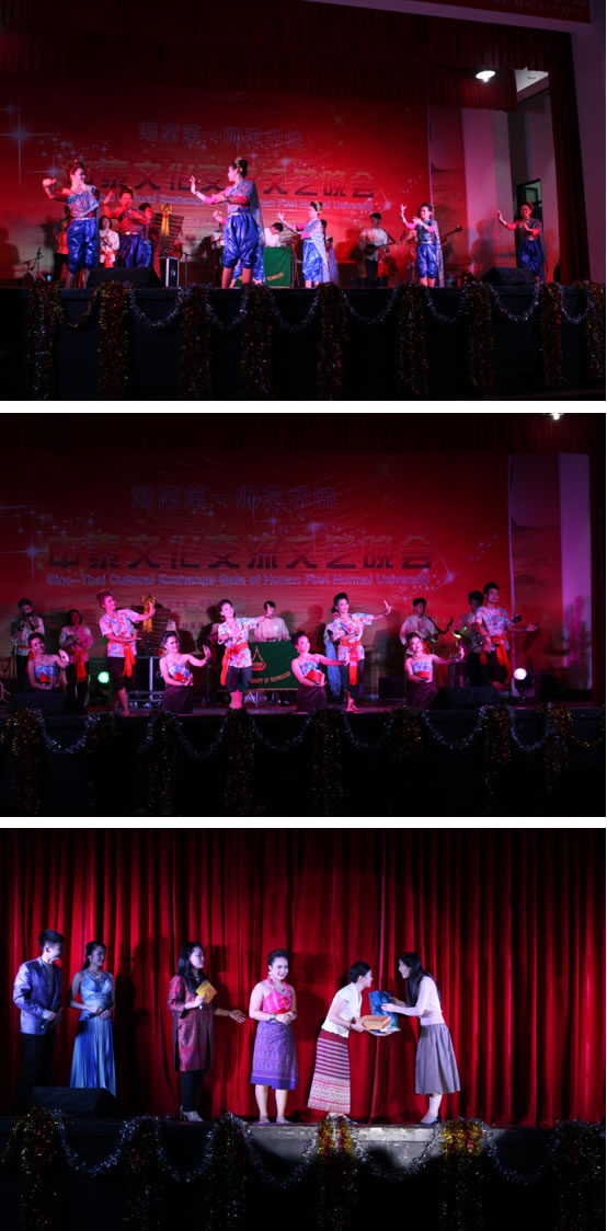 晚会的第一篇章为泰国之光。来自泰国苏兰拉里理工大学的师生们为大家献上了泰国中部、南部、北部、东北部各种不同风格的充满异域风情的舞蹈和歌曲。华美的服饰、精致的装束、绚丽的灯光、清脆的音乐,一幅幅画面、一场场情景,充满诗情画意,让人回味无穷。