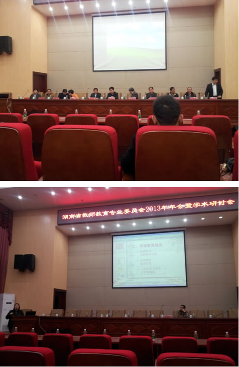 2013年11月23日,我系陈梦稀、曾晓洁两位老师参加了湖南省教师教育专业委员会年会。陈梦稀教授作为专业委员会副理事长在大会主席台就座,曾晓洁老师代表公司做《农村小学语文教师专业发展的瓶颈》报告。