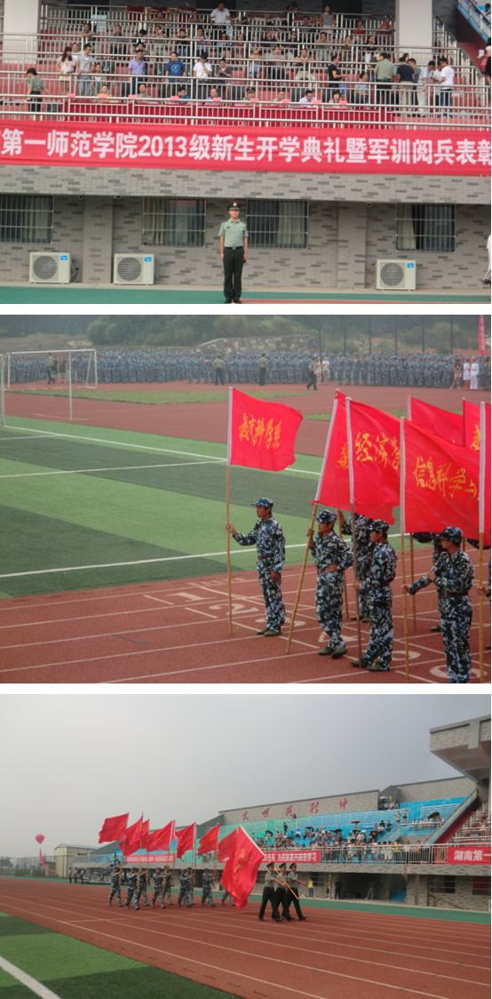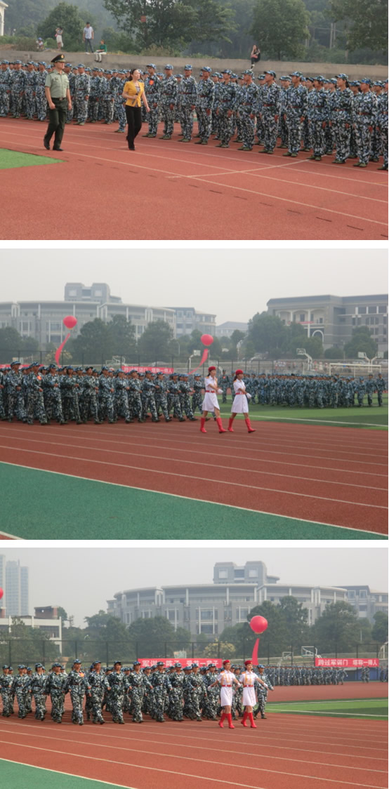 2013年9月22日上午9点,公司东方红校区2013级新生开学典礼暨阅兵表彰大会在田径场隆重举行。教育科学系2013级647名新生组成的7个方阵参加了阅兵典礼,取得了佳绩。国防科技大学丛君兹首长,公司领导彭小奇书记,刘鸿翔、李克勤、刘宇、杨兰英、童小娇副董事长及公司教务处、员工处各职能部门负责人出席了此次活动。
