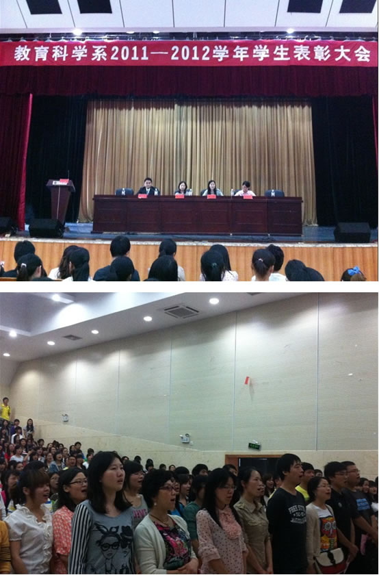 为了表彰优秀员工,树立先进典型,6月5日,我系2011—2012员工表彰大会在东方红校区科技楼演播厅召开,蒋蓉主任、袁向荣副书记、学工办陶青、黄美玲老师、各专职辅导员老师以及获奖全体员工参加了大会,大会由陶青老师主持。