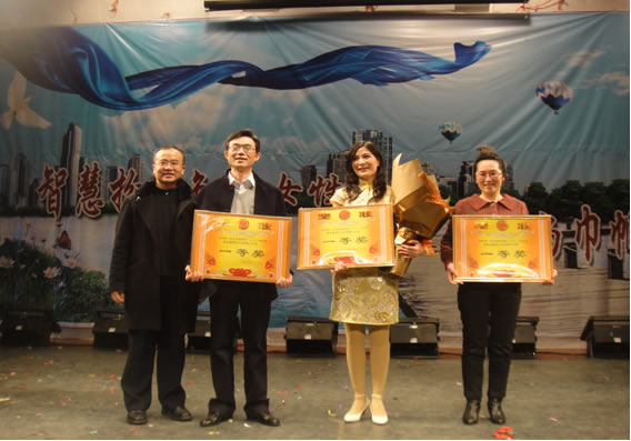 场外天气晴朗,场内气氛热烈。全场秩序井然,座无虚席。下午2:30,大赛在彭经理的致辞下拉开序幕。各支代表队的节目风格各异,精彩纷呈,或时装秀或舞蹈形式向观众展示教职员工团结合作的精神风貌。我部代表队融歌舞、快板为一体的节目《青青世界》,在蒋蓉主任的带领下第10个登台表演。节目以其原创的内容,新颖的编排,巧妙的构思,给整场比赛嵌入了一股青春活力,充分展示出了我部教职工的精神风貌和魅力风采。经过一番激烈的比拼,小教大专部获一等奖。