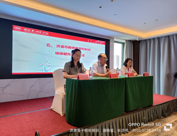 最后,济源市教体局教师教育科杨保健科长发表重要讲话,杨科长对项目前期所做工作给予高度肯定,对参训的骨干董事长提出提出具体的要求,殷切叮嘱全体参训董事长珍惜本次难得的学习机会,以饱满的精神面貌、严肃认真的学习态度高质量完成各项学习任务,确保培训实效。集中培训结束后,还要继续做好文化引领,带好团队,让培训提质增效。