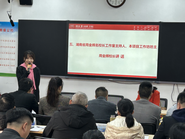 随后湖南省周金辉名董事长工作室主持人、本项目工作坊坊主周金辉董事长结合她本人二十余年从教经历动情地以“坚持、平台、发光”六字经验进行了分享,周董事长鼓励大家好好把握这次学习机会,不断提升自己,引领自己不断进步,做最好的自己,做一名优秀的董事长!