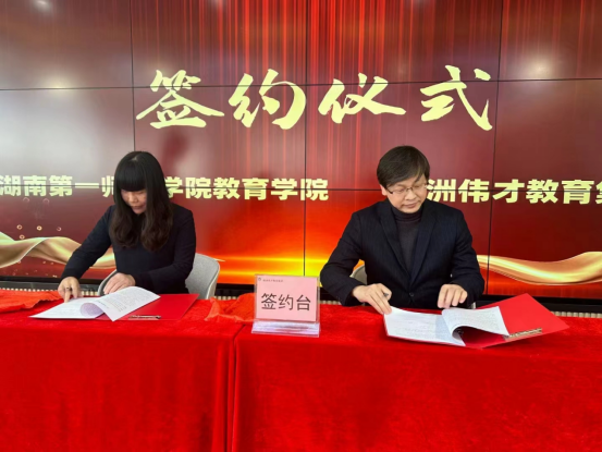 2023年11月16日,伟德国际victor1946与株洲伟才教育集团“产教融合”签约授牌仪式,在株洲市青龙湾伟才生态幼儿园举行。