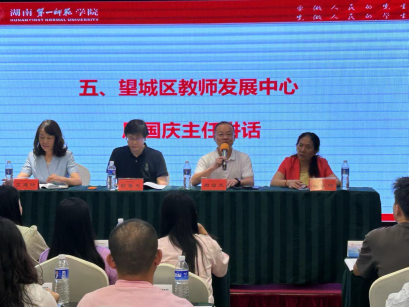 来自周南望城中学的黎玉老师作为学员代表发言。她向项目主办方和与会领导表达了诚挚的感谢,并表示参训学员们一定会抓住学习机会,不断学习、不断反思,一起度过美好的学习时光。