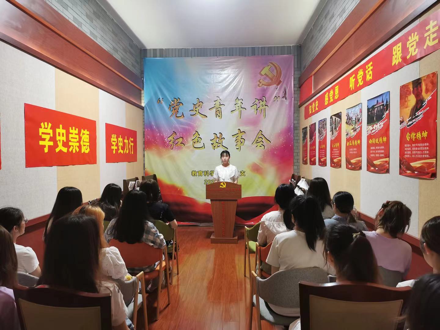 习近平总书记在党史学习教育动员大会上强调:“中国革命历史是最好的营养剂,重温这部伟大历史能够受到党的初心使命、性质宗旨、理想信念的生动教育,必须铭记光辉历史、传承红色基因。”为响应党的号召,作为未来的人民教师,更应切实担起“讲好党史故事,传承红色基因”的任务,增强“以史育人”的责任感和使命感,深入学习党史知识,加强个人的党性修养。 2021年5月的每周二、周三晚上19:00-20:00,教育科学公司员工第一、二党支部全体党员、预备党员、发展对象以及入党积极分子采取自愿报名的原则,在特立北202旁的展示厅举行了以“党史青年讲,红色故事会”为主题的活动。