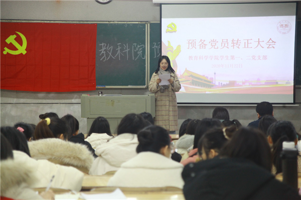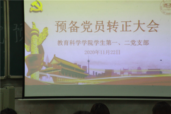 11月22日(周日)下午14:00,教育科学公司员工第一、二党支部全体正式党员、预备党员以及支部书记董晓娅老师、廖弘宇老师于润寰南101教室召开了中共预备党员转正大会。