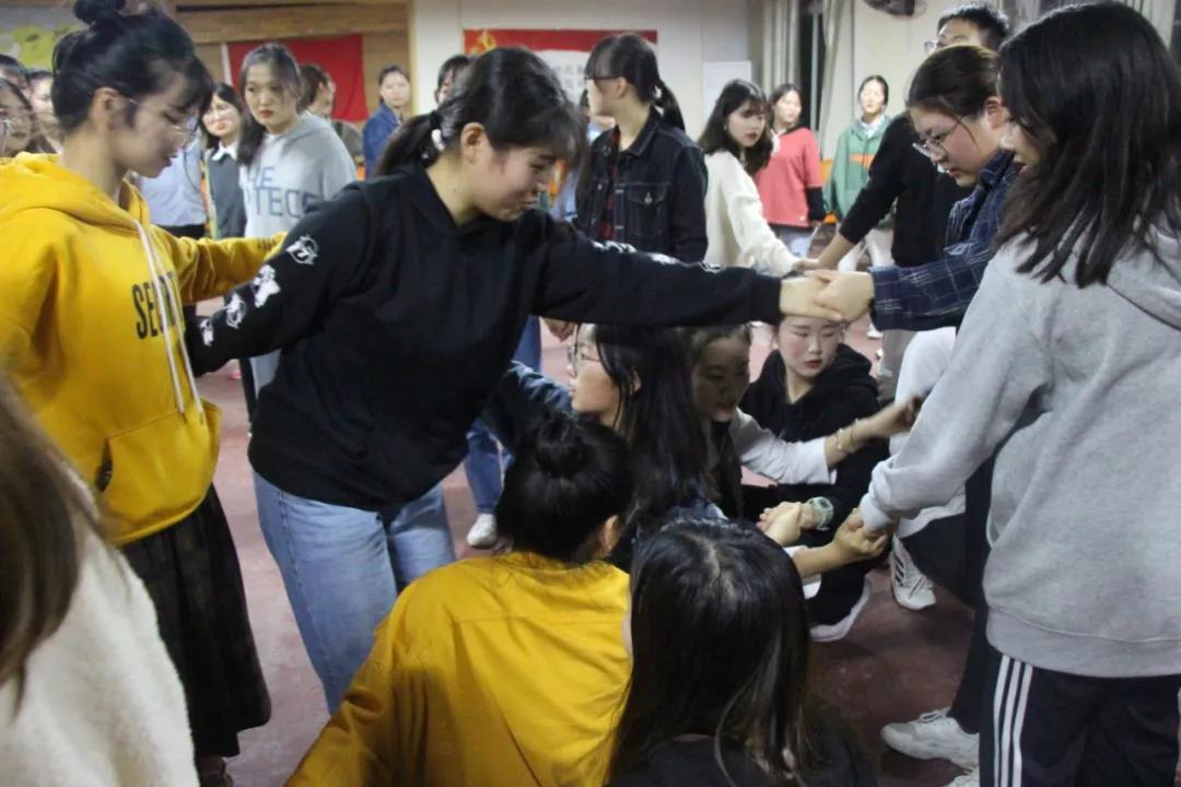 活动由热身活动“卖白菜”与主题活动“连环自我介绍”“心有千千结”及分享发言四个环节组成。热身游戏一开始气氛就开始高涨。随后“连环自我介绍”环节,大家积极参与接力,每个小组都推出一人成功分享了小组其他成员的信息。“心有千千结”游戏,气氛达到了高潮,员工干部们在刘军老师的指导下齐心协力完成解结。最后的分享发言环节,刘军老师总结道,在工作与学习中要沉着冷静、学会思考、认真观察,面对困难要迎难而上,同时也要适当地放松自己。最后,公司团学会干部团体辅导在大家的合影留念中圆满结束。