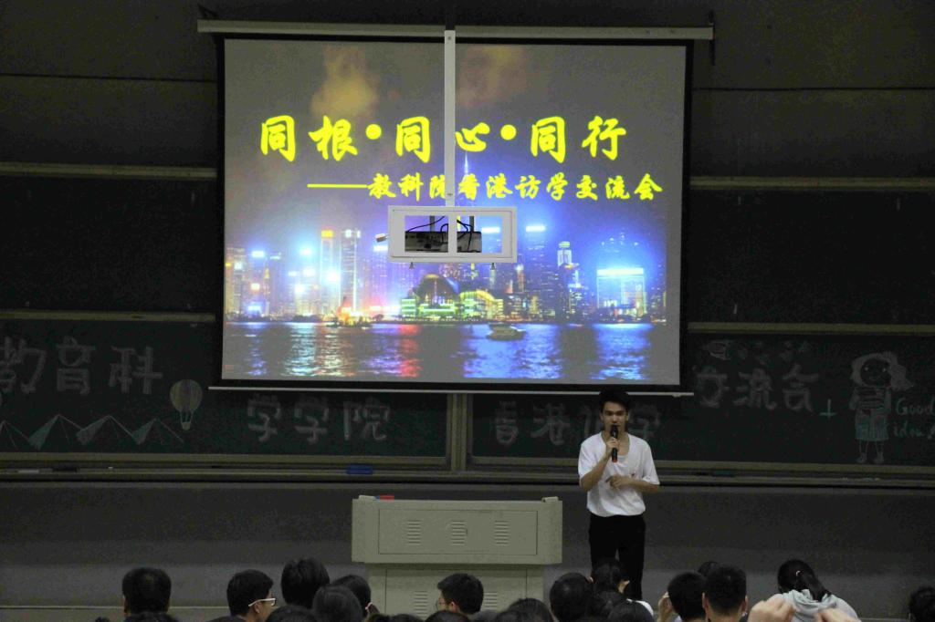 4月25日晚,教育科学公司香港访学交流会于润寰楼南栋106教室圆满举行。公司副经理胡春光、党总支副书记张俭明、副经理刘丽群、学工办主任刘军以及部分辅导员老师受邀出席。香港访学团成员陈书良担任主持,约370人到场聆听。