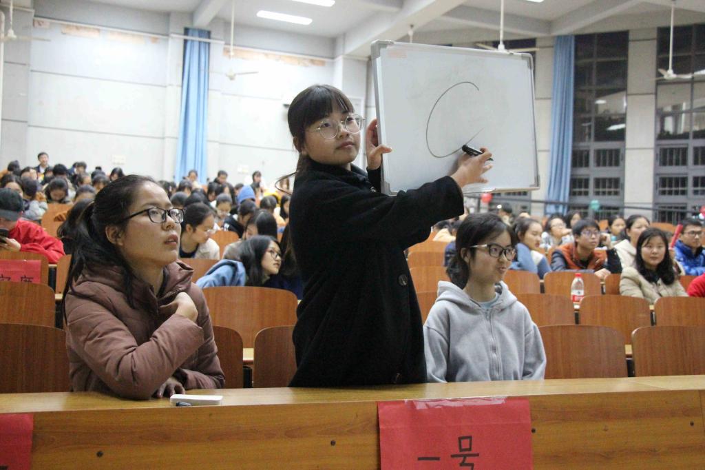 活动开始之际,主持人介绍了参赛班级及比赛规则,6个班级的参赛人员蓄势待发。第一环节必答题作答时,参赛选手们胸有成竹,沉着作答,每一次“请亮题板”后都能看到他们从容不迫的神色。第二环节抢答比赛时,参赛选手们自信满满,不甘示弱,齐心协力地为自己的班级争夺荣誉。在主持人“开始抢答”口令后,迅速作出反应、亮出题板,以抢夺答题机会。两环节的比赛完美地体现了选手们充足的准备和超强的实力。