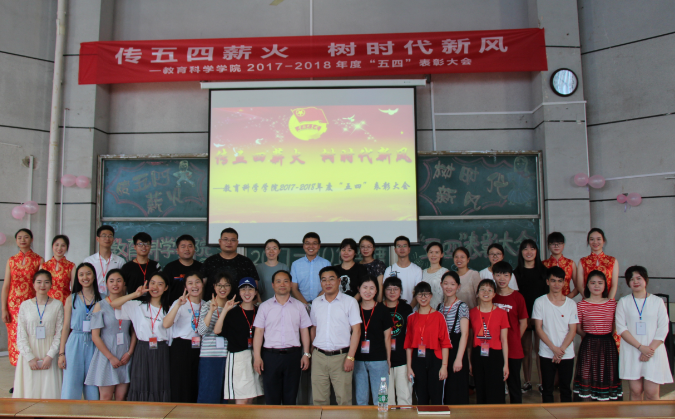 5月15日下午,为弘扬五四精神,表彰先进集体和先进个人,教育科学公司2017—2018学年 “五四”表彰大会于怀中楼报告厅隆重举行。教育科学公司党总支副书记张俭明、副经理王建平及辅导员朱阿芳、罗娱、刘森林、石慧、杨杨、廖弘宇、邓魁等老师出席大会,院学工办副主任刘军担任主持,200余名团员干部参加了大会。