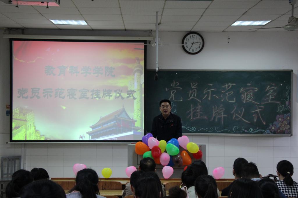 4月13日下午,教育科学公司在怀中楼B栋602教室举行2018年党员示范寝室创建挂牌仪式。出席挂牌仪式的有教科公司党总支副书记张俭明、副经理王建平、学工办刘军老师及部分辅导员,70余名员工党员及入党积极分子参加了仪式。