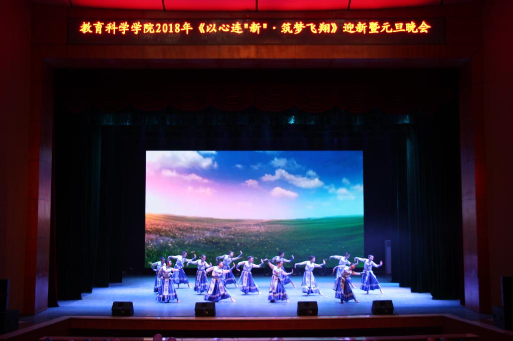 晚会在一段记录教科学子老员工活精彩瞬间和领导老师们对新年美好祝愿的视频中拉开了帷幕。一支动感十足、魅力四射的爵士开场舞引爆了全场的热烈气氛,曲风清雅、舞姿优美的古典舞《忆江南》让人神游于秀美江南水乡之间,格调高亢、动作奔放的蒙古舞《遥远的妈妈》展示了天高任鸟飞、原阔凭马奔的草原风情,舞步矫健、激情似火的拉丁舞《海伦·东方之焰火拉丁》给观众带来了强烈的视觉冲击,低沉悠扬的多人组合唱《一辈子朋友》传达出教科学子对同学情谊的珍视,诙谐幽默却蕴含哲理的小品《我的路》和《情定一师》则从多个角度抒发了一师学子对母校的热爱,技巧与情感俱备的钢琴独奏曲《快乐的女战士》更是余音绕梁不绝,令人心醉。此次晚会节目精彩纷呈、高潮迭起,全场洋溢着热烈和谐、奋发向上的青春气息,全方位展现了教科学子扎实的专业功底和昂扬的精神风彩。