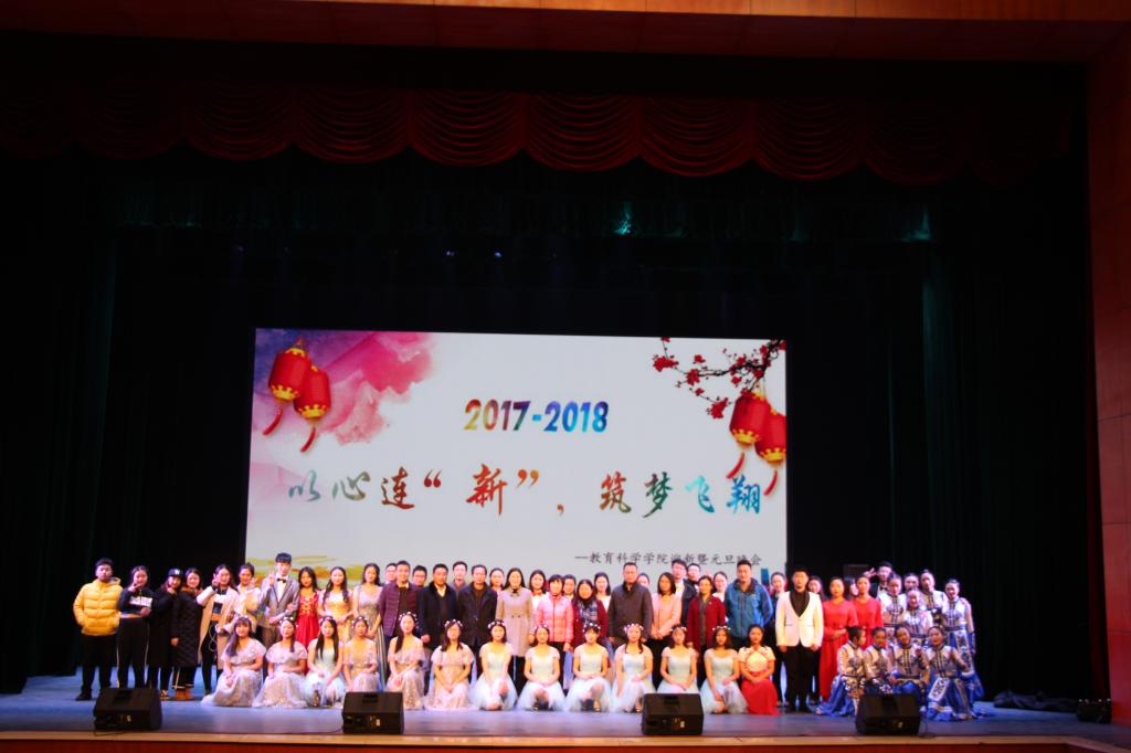 2017年12月25日晚,教育科学公司2018年“以心连‘新’,筑梦飞翔”元旦晚会在音乐剧场隆重举行。董事长童小娇、公共实验管理中心主任朱承学、教务处副处长李建亚、员工工作处副处长欧阳伶俐、美术设计公司副书记舒克斌、教育科学公司负责人蒋蓉、陈天涯、张俭明、刘丽群及全体专兼职辅导员老师应邀出席,近800名师生共同观看了晚会。
