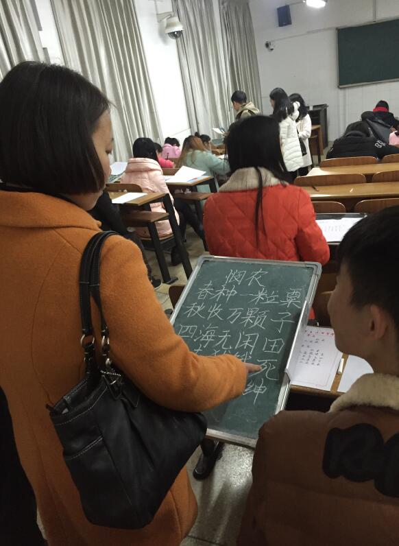 本次活动展示的技能包括粉笔字、钢笔字和简笔画,由员工会干部当场公布指定的书写内容。每个班分派三位指导老师,担任观摩点评工作,由员工干部进行全程拍照、录音并做好相关记录。活动中,所有参展员工严阵以待,将自己平时训练中最佳水平发挥出来,接受公司领导及老师们的检阅。指导老师对同学们严肃认真的态度和在钢笔字、粉笔字、简笔画三项教师技能训练中取得的进步给予了充分肯定,同时也指出了大家在各项教师技能上存在的书写速度过慢、版面布局欠合理等问题,并提出了改进意见和建议。同学们纷纷表示活动中老师的点评对今后的训练起到了很好的指导作用。