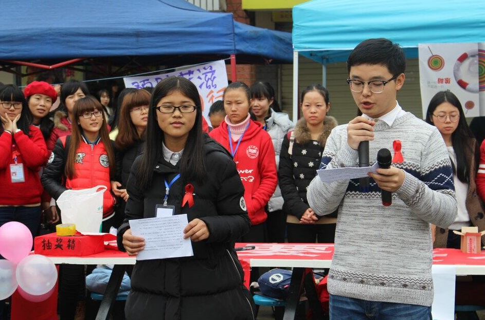 12月2日中午12点,教科院与文传院防艾宣传活动开幕式在文化广场举行。由心育部吴祖齐、张雨桑主持,出席的嘉宾有校心育部副部长陈玲、院心育部部长肖水林、副部长唐小芳、心理咨询室主任张春光及公司团学会各部门干部代表。