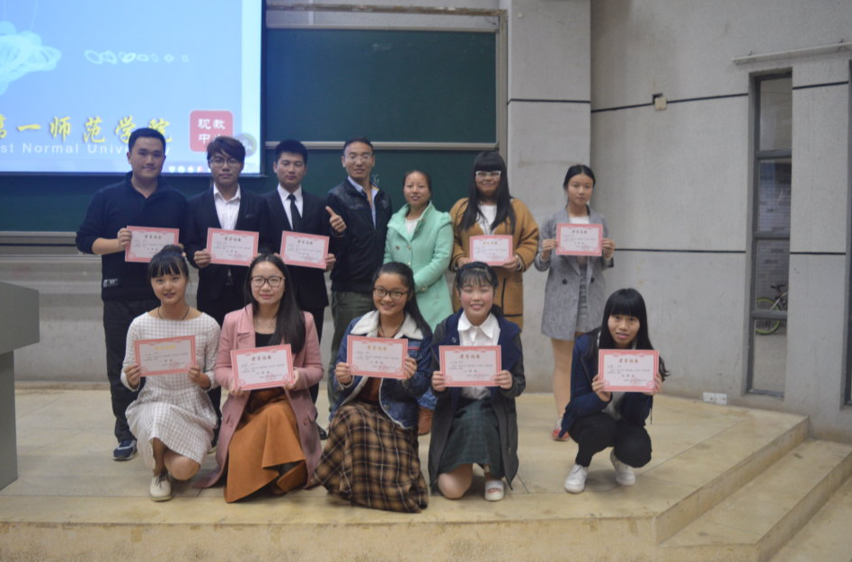 演讲全部完毕后由石慧老师对本次比赛进行讲评,她高度肯定了比赛的组织工作以及选手们的出色表现,她表示作为一名老师参加这次比赛,深切地感受到了同学们对老师的深情厚谊。最后15科教693班吕雨比赛一等奖,13小教2班周浩、14级665科教班何萌、15科教695班邓晶晶等获得二等奖,14小教文3班张雨桑、14心理1班文承来、14小教文3班杨赟、14小教文3班王媛、13小教6班张雪和15小教理1班杨莹剑等获得三等奖。