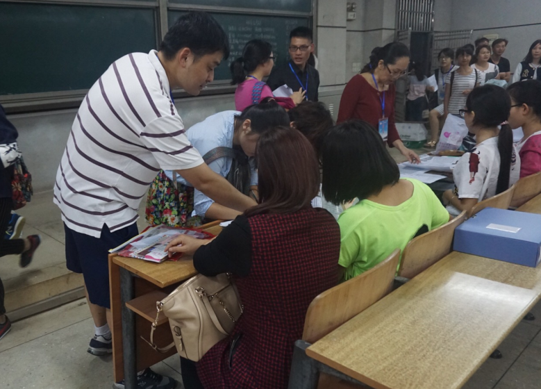 又是一年开学季。2015年9月12日早上6点40分,教育科学公司全体辅导员,迎新员工干部就已经各就各位,各司其职,开始了迎接2015级新生的工作。 此次迎新,公司组织了100名师生作为迎新工作者。在西站\公司门口、文b107、207教室、员工寝室等多个迎新点,他们不厌其烦,不辞辛苦,引导新生完成各项报到程序。公司团学会制作了微信扫描码,新生扫一扫就能找到班号学号;迎新教室醒目的班牌让新生立马就能找到报到班级;训练有素的迎新教师和员工干部,办理报到的各项手续规范、迅速;接送员工报到入住宿舍的学长学姐,如同家人般亲切自然。他们尽职尽责、热情服务。报到现场井然有序、气氛温馨和谐。正如教育科学公司迎新标语所写:“接过你的行囊,我们是教科一家人”,教科院的迎新工作,让新生充分体会到了教科院这个大家庭的关爱和温暖,让家长深切地感受到了教科院教育管理工作规范有序,员工训练有素。
