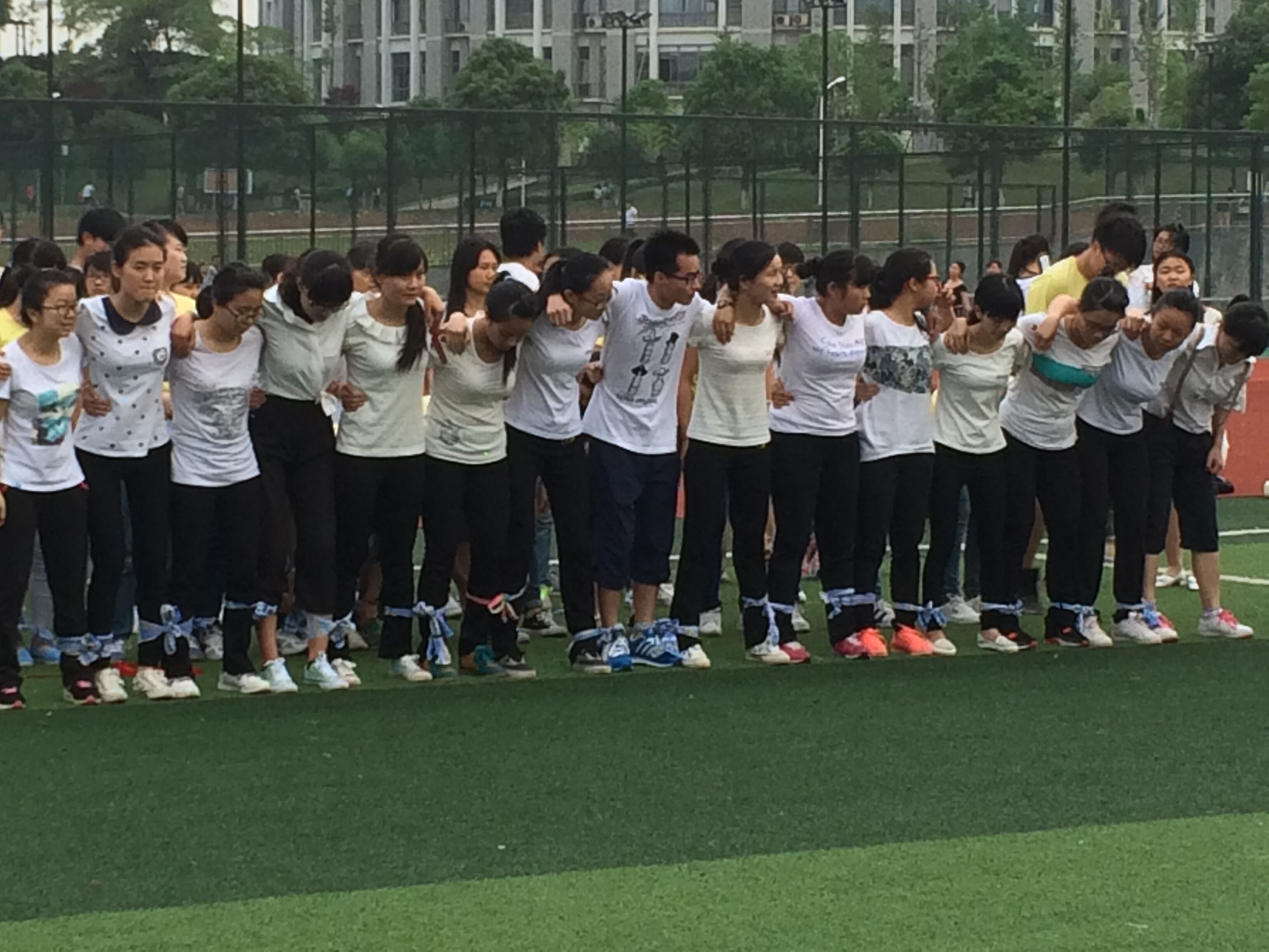 2015年5月20日下午6点,教育科学公司在东方红校区田径场举行了趣味“绑腿”运动赛。13、14级共31个班级参加初赛,12个班级180名选手进入决赛。教育科学公司副书记谭玉兰、学工办主任陶青观看了本次比赛。